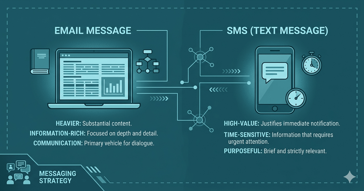 Treat your messaging strategy like a nutrition plan. Use SMS sparingly and purposefully—reserve it for high-value, time-sensitive updates. Let email handle the heavier, information-rich communication. And above all, respect your audience’s boundaries: frequency, relevance, and timing are the difference between being welcomed and being ignored.